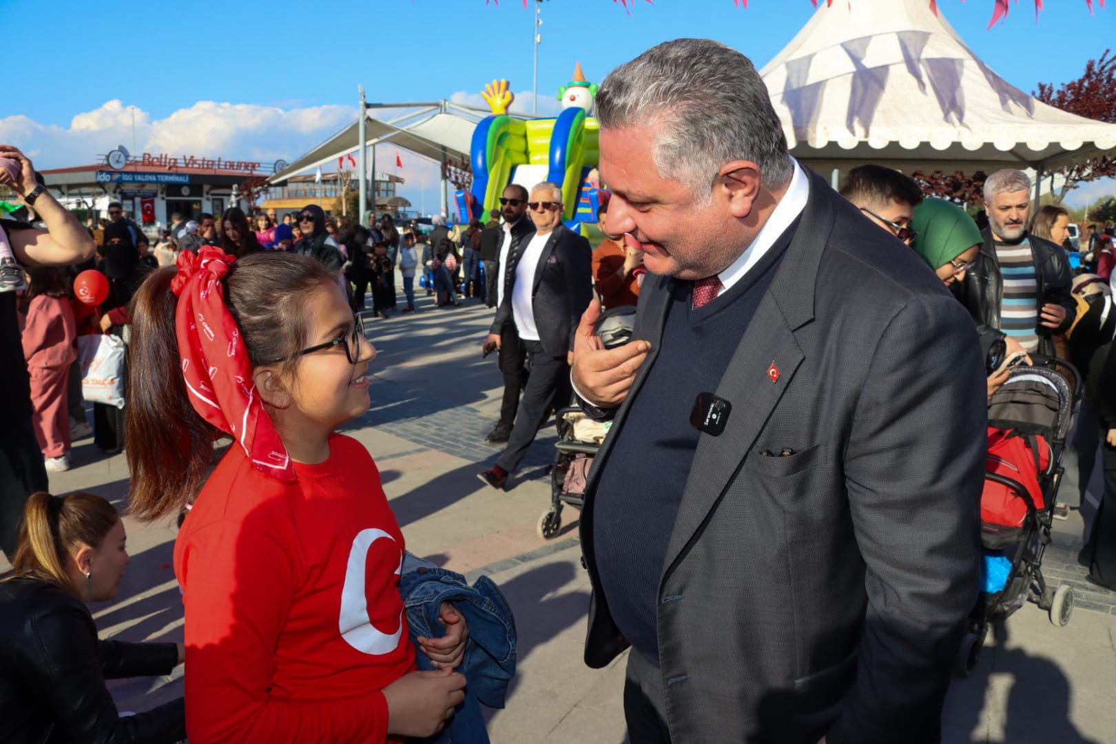 Kutlamaların merkezi olan 15 Temmuz Demokrasi ve Cumhuriyet Meydanı’nda gerçekleştirilen kutlamalarda, Yalova Belediye Başkanı Mehmet Gürel çocuklar ve vatandaşlarla bir araya geldi.