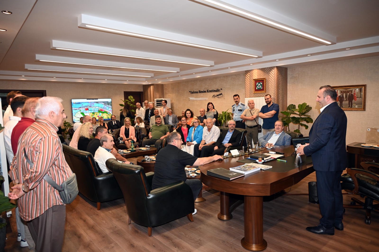 Dernek Başkanı Bahattin Sabahçı ve dernek üyeleri de yapılan ziyarette söz alarak görüşlerini bildirdi. “Sizin gibi çalışkan bir başkana sahip olduğumuz için şanslıyız ve yaptığınız çalışmalar için teşekkür ediyoruz” diyen dernek üyeleri, Yalova Belediyesi ile ortak projeler konusunda da işbirliği yapılması gerekliliğine değindi. Başkan Sabahçı, “Güzel şehrimiz için yapılacak tüm güzel çalışmalarda proje ortağı olarak yer almak isteriz. Yalova’mızın sorunlarının çözümü için güç birliği zamanı” dedi.