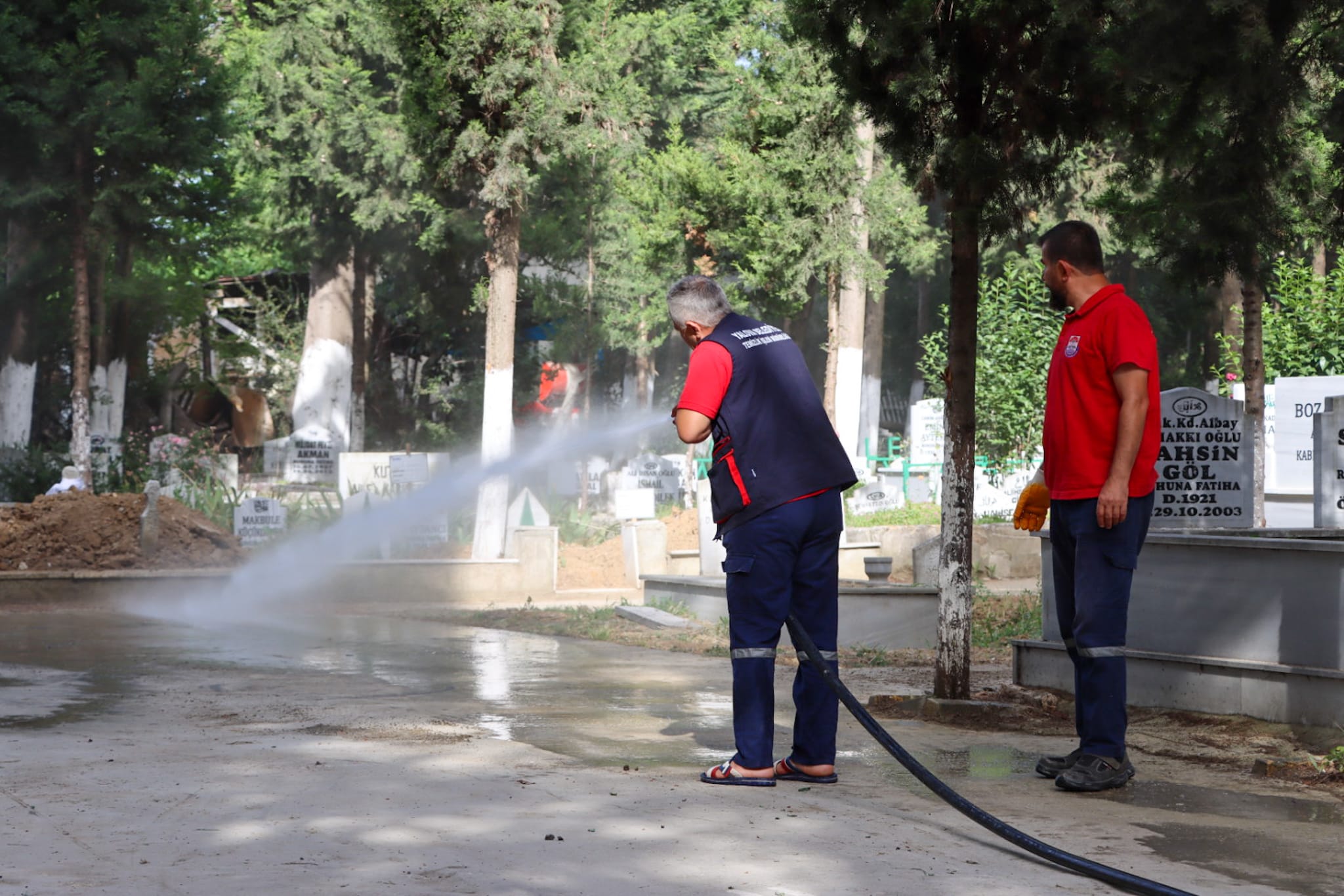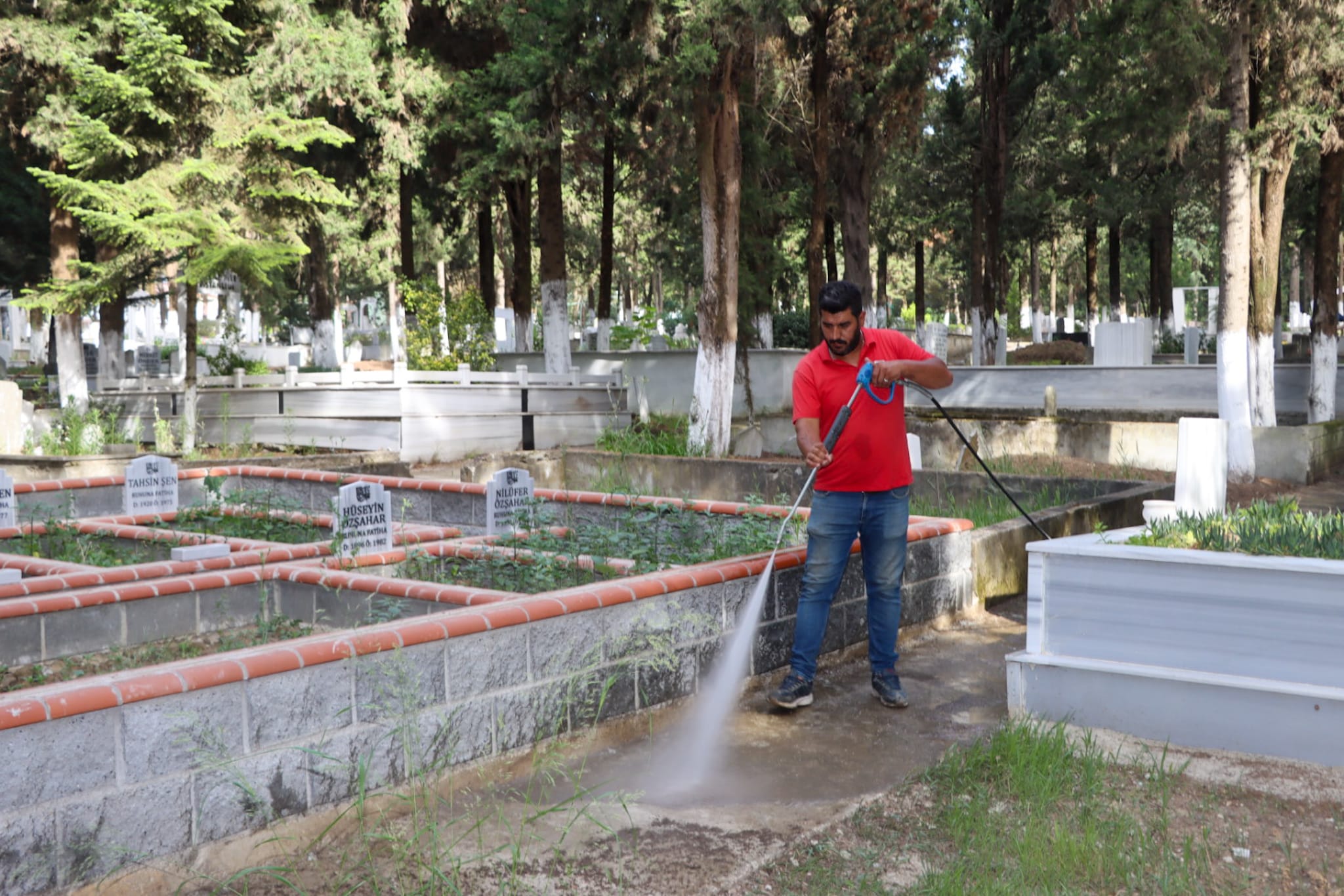 Konuyla ilgili bilgi veren müdürlük yetkilileri, “Ekiplerimiz, mezarlık alanındaki yabani otları biçti, yolları temizleyip yıkadı, çöpleri topladı, atıkları araçlarla çöp alanına aktardı. Halkımızın mezarlık ziyaretlerini daha temiz ve daha ferah bir ortamda gerçekleştirmeleri için temizlik çalışmalarımızı tamamlıyoruz” şeklinde konuştu.
