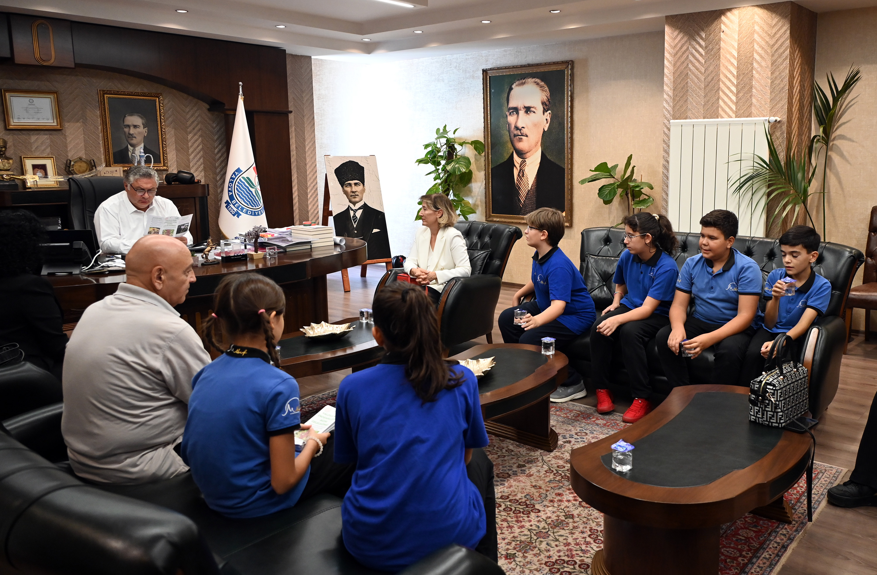 Yalova Mehmet Akif Ersoy Ortaokulu öğrencileri, öğretmenleri Begüm Bozkurt öncülüğünde doğa bilinci oluşturmak amacıyla yürüttükleri çalışmalar kapsamında Yalova Belediye Başkanı Mehmet Gürel’i ziyaret etti.