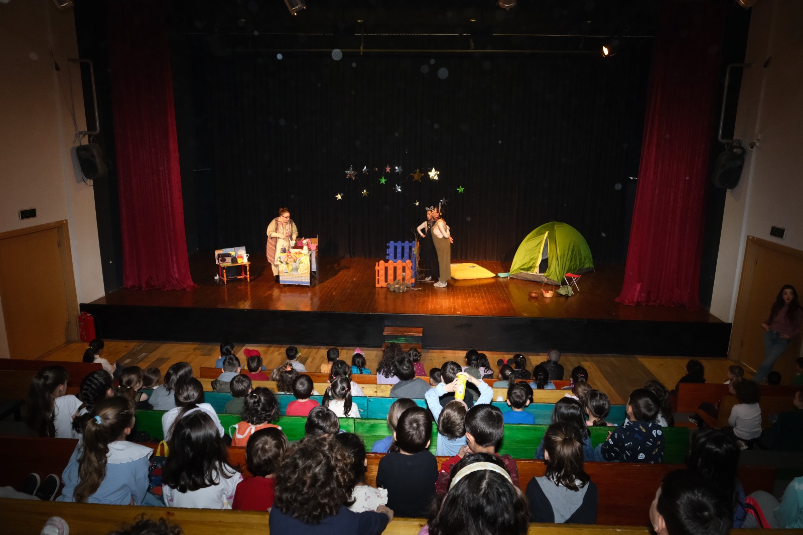 Yalova Belediyesi, hafta sonu için çocuklara güzel ve eğlenceli bir tiyatro gösterisini çocukların beğenisine sundu. Senaryosunu Baran Nogay’ın yazdığı ‘Yıldız Kampı’ adlı çocuk oyunu, minik tiyatro severlerle buluştu.