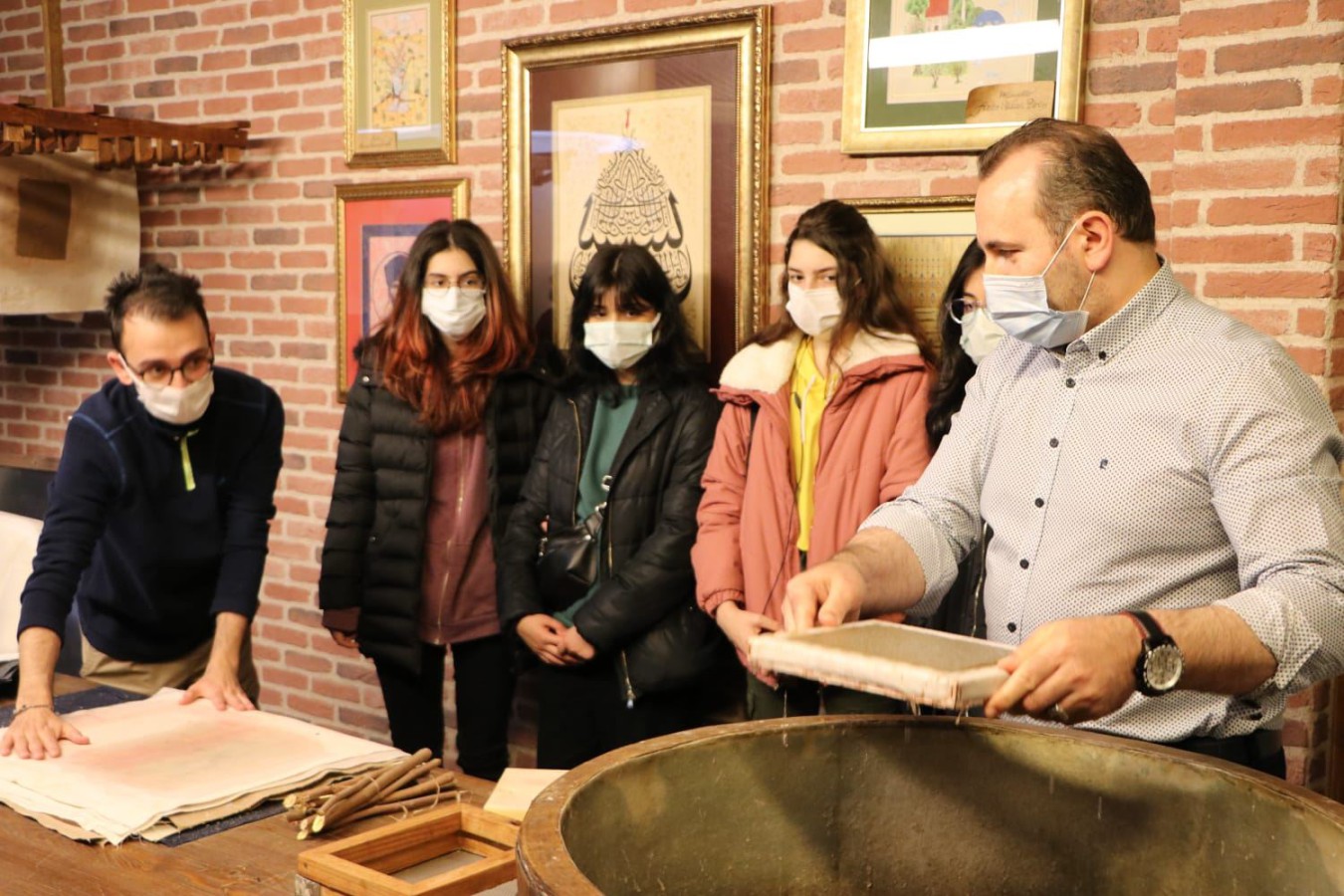 Yalova Belediyesi ile Güzel Sanatlar Lisesi arasında imzalanan protokol kapsamında öğrenciler müfredata giren uygulamalı kağıt yapımı derslerini İbrahim Müteferrika Kağıt Müzesi’nde görecekler. İmzalanan protokolün ardından ilk dersleri için kağıt yapımına başlayan öğrencilere Yalova Belediye Başkan Vekili Mustafa Tutuk da eşlik ederek öğrencilerle birlikte kağıt yapımına katıldı. Yapılan protokol hakkında bilgiler veren Başkan Vekili Tutuk, “Yalova Güzel Sanatlar Lisesi ile Belediyemiz arasında imzalanan protokol sonrasında okulun müfredatında kağıt yapımı dersimizde yer aldı. Haftanın belirlenen günlerinde öğrenciler, İbrahim Müteferrika Kağıt Müzemizde eğitmenlerimiz tarafından uygulamalı olarak derslerini alacaklar. Bende ilk derste yanlarında olup öğrencilerimize başarılar dilemek istedim. Osmanlı döneminde ilk kağıt fabrikasının kurulduğu yer olan şehrimizden bu konuda önemli çalışmalar yapacak öğrencilerimizin yetişeceğine inancım tam” dedi.