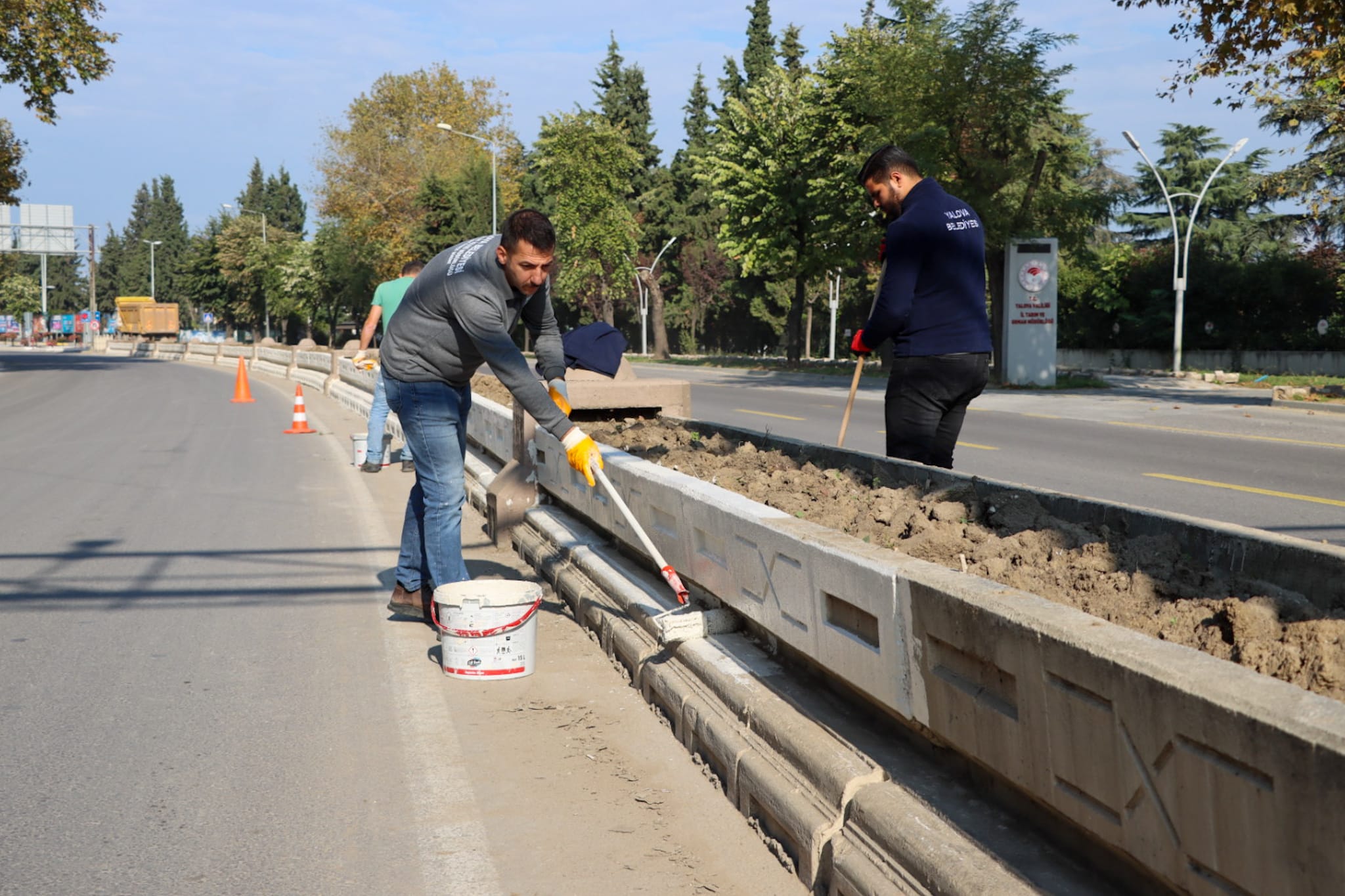 Yalova Belediyesi Temizlik İşleri Müdürlüğü Park ve Bahçeler Birimi ekipleri, kent estetiğini güçlendirmek amacıyla Cengiz Koçal Caddesi orta refüjünde boyama çalışmalarına başladı.