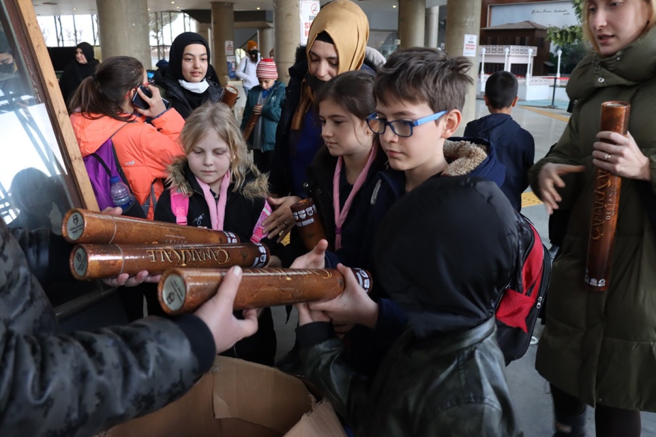 Yalova Belediyesi tarafından oyunun bitimiyle birlikte izlemeye gelen öğrencilere Çanakkale Savaşlarını akıllı telefonlara indirecekleri uygulamayla anlatan harita hediye edildi.