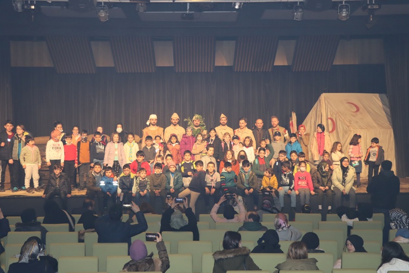 18 Mart Çanakkale Savaşı ve Şehitleri Anma Günü nedeniyle Raif Dinçkök Kültür Merkezi’nde sahnelenen oyunu Yalova Belediye Başkan Yardımcısı Fatih Şahin ile birlikte çok sayıda vatandaş izledi. Cuma günü 1, Cumartesi günü 2 seans olmak üzere toplam 3 seans olarak sahnelenen oyuna vatandaşların yanı sıra çok sayıda öğrencide oyunu seyretmek için salonu doldurdu.