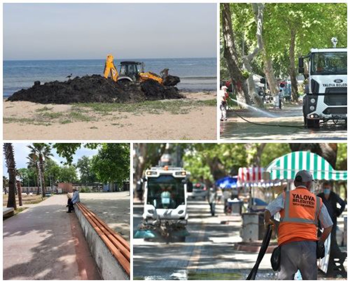 Yapılan temizlik çalışmasında yollar tazyikli ve ilaçlı sularla yıkanırken aynı zamanda Yalova Belediyesi personelleri ve süpürge aracıyla en ince ayrıntısına kadar cadde temizlendi. Temizlik çalışmaları yanısıra Gazipaşa Caddesi Akasya Parkta yapılan düzenleme çalışmaları kapsamında vatandaşların dinlenmeleri için ahşap metaryeller park bahçe ekiplerince monte edildi. Temizlik çalışmaları kapsamında deniz dibinden koparak görüntü oluşturan yosunlar Akasya Park Plajından temizlendi. Yapılan çalışmalar hakkında bilgiler veren ekipler; “Düzenli olarak yapmış olduğumuz yıkama ve temizlik çalışmasını daha kapsamlı bir şekilde yaparak sahilimizi yaza hazırlıyoruz. Başta temizlik personelimizin gayretleri olmak üzere temizlik araçlarımızla birlikte sahilimizi pırıl pırıl yaptık. Vatandaşlarımızı da kurallara uymaları ve çevreyi korumaları yönünde rica ediyoruz. Bununla birlikte aynı müdürlüğümüz tarafından başlatılan çalışmayla sahilimizin belli bölümlerinde beton zemin üzerlerine tahta metaryeller monte ederek oturma alanları yapmaktayız” dediler.