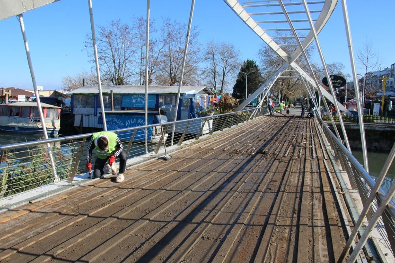 Yalova Belediyesi ekipleri, Mihenk Sokak üzerinde bulunan Ak Şemseddin Köprüsü (AŞK) üzerinde çalışma başlattı. Yalova’nın önemli lokasyonlarından ve gece ışıklandırılmış güzel görüntüsüyle Yalova’nın fotoğraf çekilme noktalarından biri olan Ak Şemseddin Köprüsü’nde çalışmaların kısa sürede bitmesi planlanıyor. Köprü üzerinde mevcut olan malzemenin deforme olduğunu belirten Yalova Belediyesi ekipleri; “Ak Şemseddin Köprüsü üzerinde bulunan malzeme zamanla deforme olmuş ve kullanılamaz hale gelmişti. Yapmış olduğumuz çalışmada köprü zemini Solit Full Deck dayanıklı malzeme ile kaplanacak. Köprüden çıkarılacak olan malzemeler ise geri dönüşüm olarak şehrimizin farklı noktalarında saksı malzemeleri olarak kullanılacak” dediler.