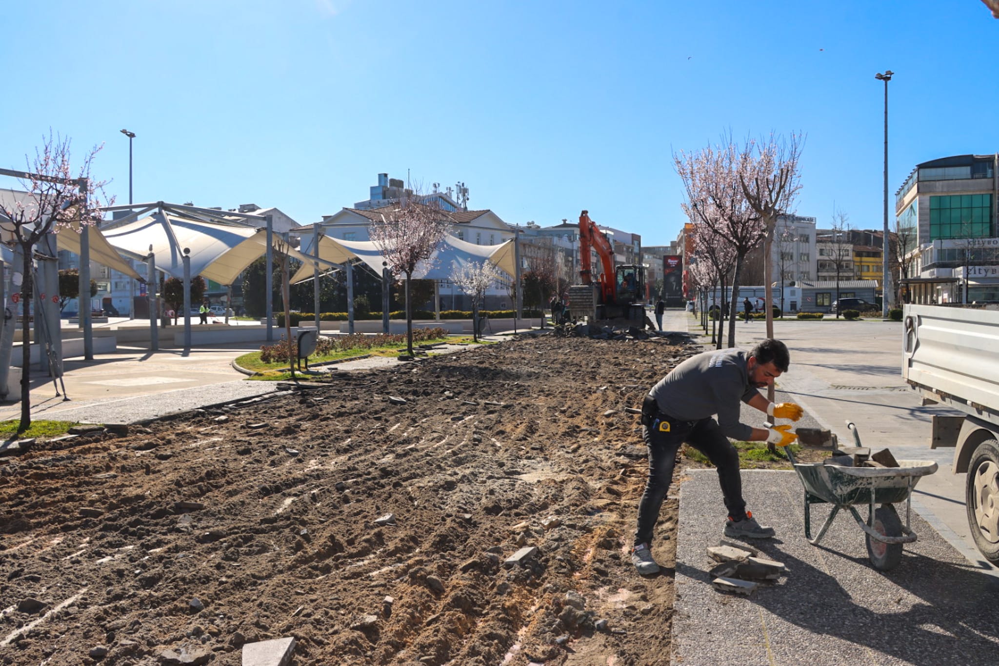 15 Temmuz Demokrasi ve Cumhuriyet Meydanı’nda zamanla oluşan zemin bozulmalarının giderilmesi amacıyla Yalova Belediyesi tarafından kapsamlı bir düzenleme çalışması başlatıldı.