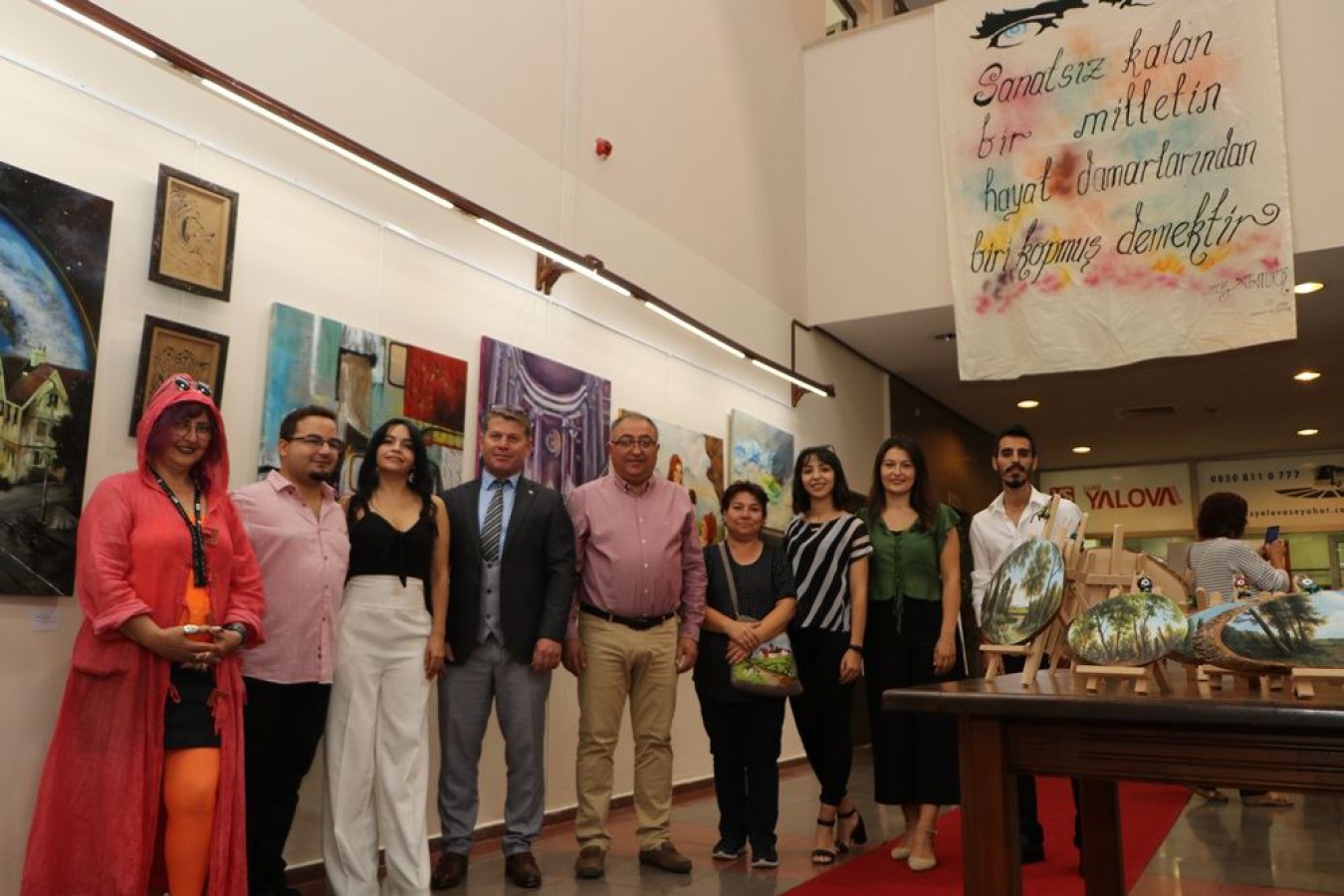 Yalova Belediyesi öncülüğünde “Ne yer ne de zaman; sanat her zaman, her yerde” fikri ile yola çıkan 7 ressamın birbirinden güzel eserlerin yer aldığı serginin açılışını Belediye Başkanı Vefa Salman yaptı. Açılışa; Belediye Başkan Yardımcısı Cevdet Bekler, Cumhuriyet Halk Partisi Yalova İl Başkanı Nur Koçak, Yalova Belediye Meclis Üyeleri ve çok sayıda davetli katıldı. Ressam Ayşegül Arat, Burcu Kocakurt, Onur Fatih Günday, Özlem Kara, Saadet Akdağ, Seda Bayar ve Yılmaz Güneş’in hisleri üzerinden kâğıda dökülen birbirinden güzel karakalem, yağlı boya gibi eserler bir hafta boyunca Yalovalılar ile buluşacak.