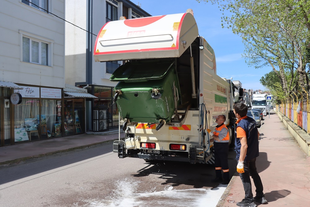 Mahalle, cadde ve sokaklarda temizlik çalışmaların rutin olarak devam eden ekipler, çöp konteynerlerini deterjan ve dezenfektanlı tazyikli sıcak suyla yıkamasını gerçekleştiriyor. İlk olarak deterjan ve dezenfektan sıkılan çöp konteynerleri yıkama aracının içinde yaklaşık 5 dakika tazyikli sıcak suyla yıkanarak temiz bir duruma getiriliyor.