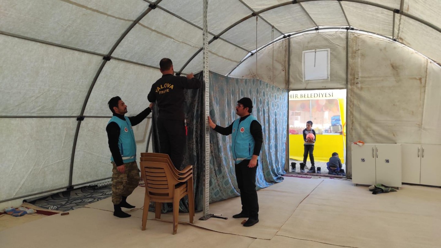 Kahramanmaraş merkezli gerçekleşen ve 10 ili etkileyen büyük depremlerin neden olduğu yaraları sarmak adına yapılan çalışmalarda, Yalova Belediyesi etkin rol oynuyor. Yalova Belediyesi İtfaiye ekipleri, depremden en fazla etkilenen iller arasında yer alan Gaziantep’te, çadır kurulumu çalışmalarına da destek veriyor.