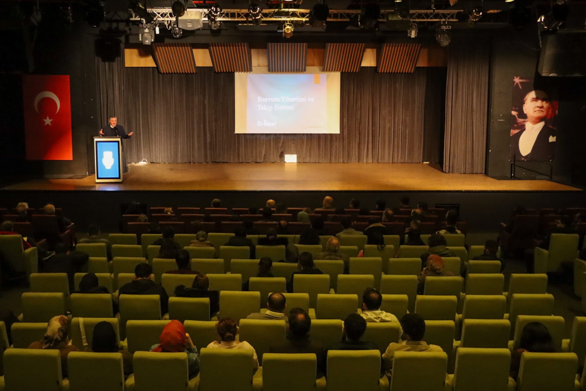 Başkan Gürel’in konuşmasının ardından D-İmar Yönetim Sistemi hakkında slayt eşliğinde teknik bilgilendirme yapıldı. Toplantıda sistemin işleyişi, başvuru süreçleri ve uygulamanın sağlayacağı kolaylıklar katılımcılara detaylı şekilde anlatıldı.
