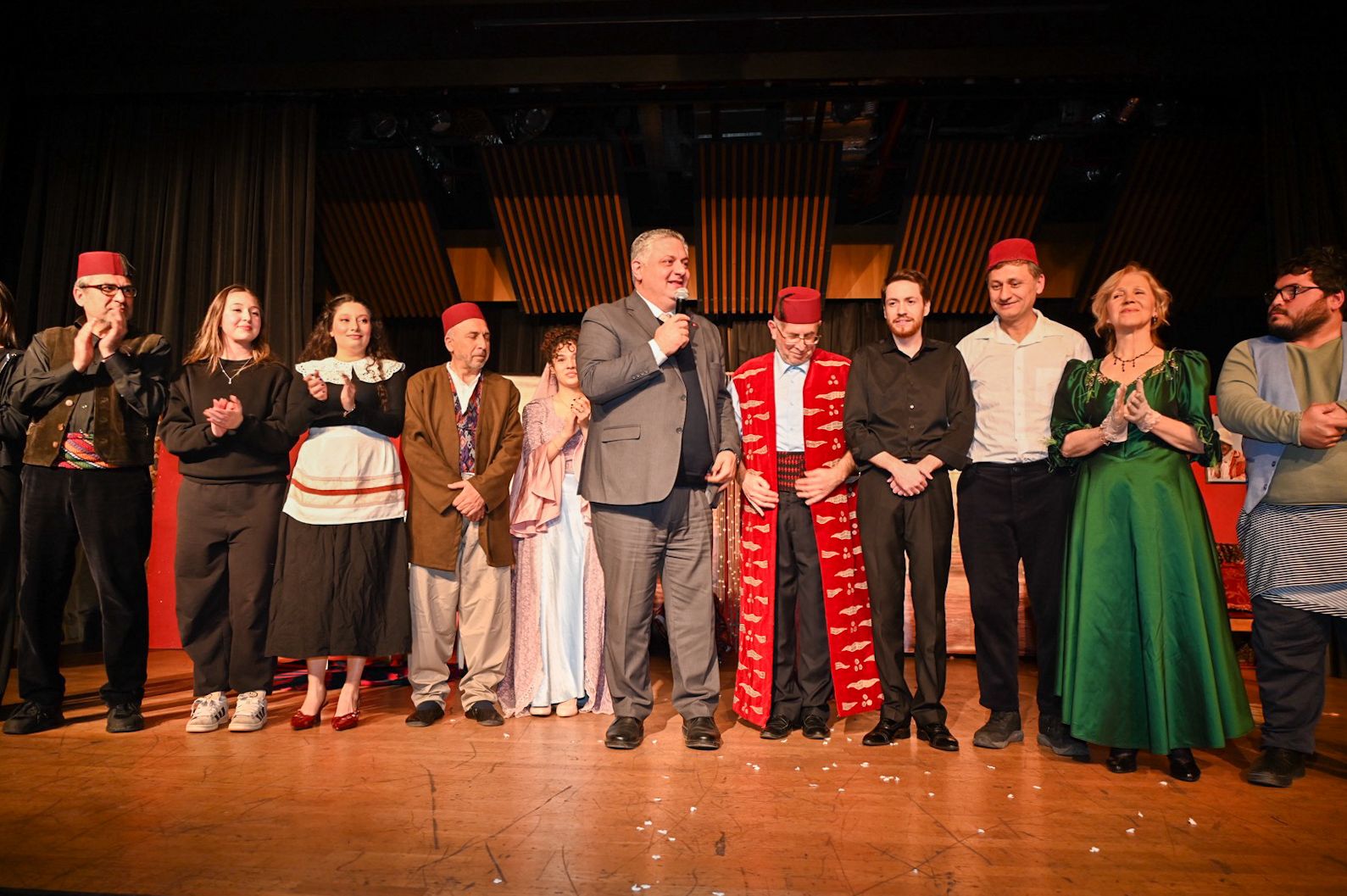 Anadolu’nun en dokunaklı aşk hikâyelerinden biri olarak hafızalarda yer edinen “Tahir ile Zühre”, aşkın cesaretle sınandığı ve kaderin hayatlara yön verdiği güçlü anlatımıyla izleyicileri derinden etkiledi. Dekor, kostüm ve oyunculuk performanslarıyla büyük beğeni toplayan oyun, salonu dolduran sanatseverlerden uzun süre alkış aldı.