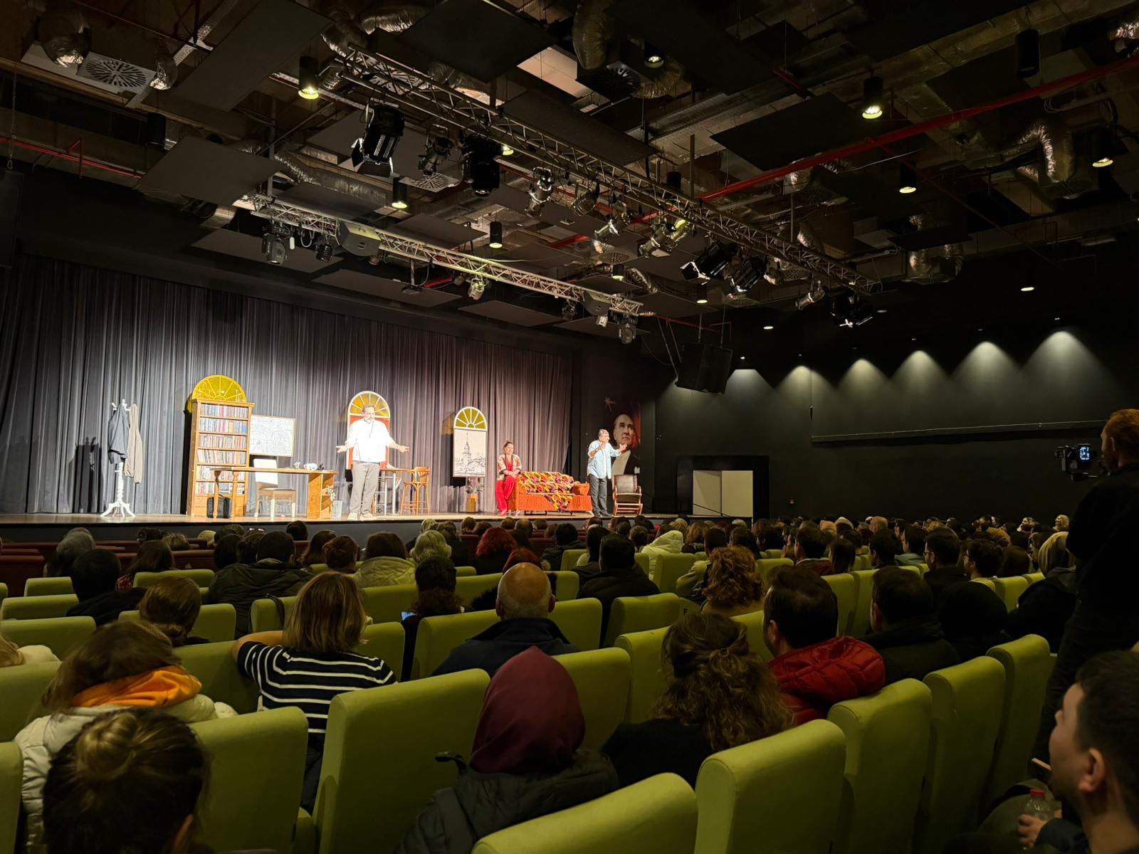Başrollerini Sevinç Erbulak, Hakan Bilgin ve Yosi Mizrahi’nin paylaştığı oyun, izleyicilere hem eğlenceli hem de düşündürücü anlar yaşattı. Oyuncuların sahnedeki güçlü performansları ve sahne uyumu seyircilerden tam not alırken, salonu dolduran izleyiciler oyun sonunda sanatçıları ayakta alkışladı. Gösterimin gerçekleştiği salonda yoğun katılım dikkat çekti.
