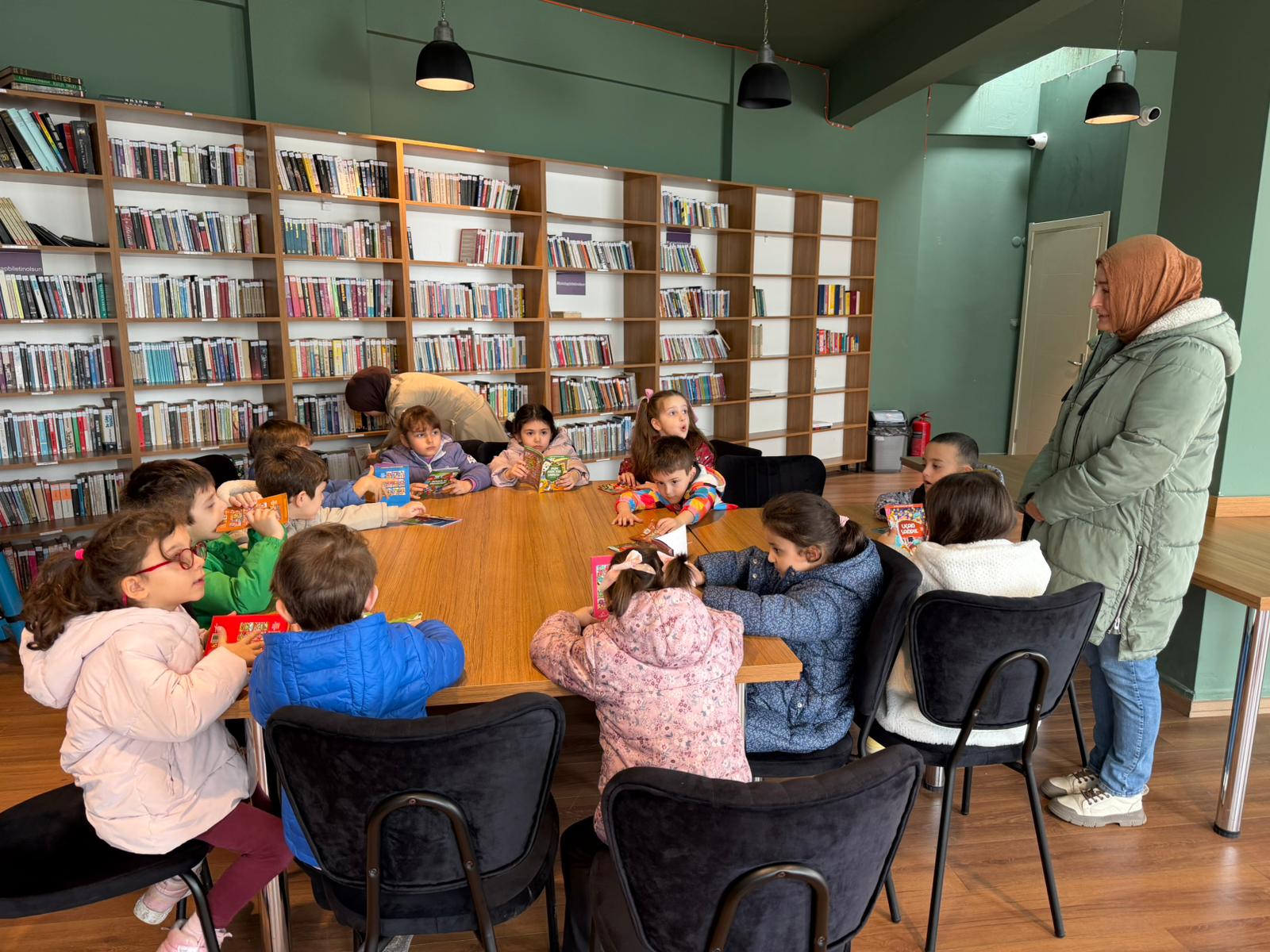 Ziyaret sırasında öğrencilere kütüphanenin bölümleri tanıtıldı, kitap okuma alışkanlığının önemi anlatıldı. Etkinlik, renkli ve samimi görüntülere sahne oldu.