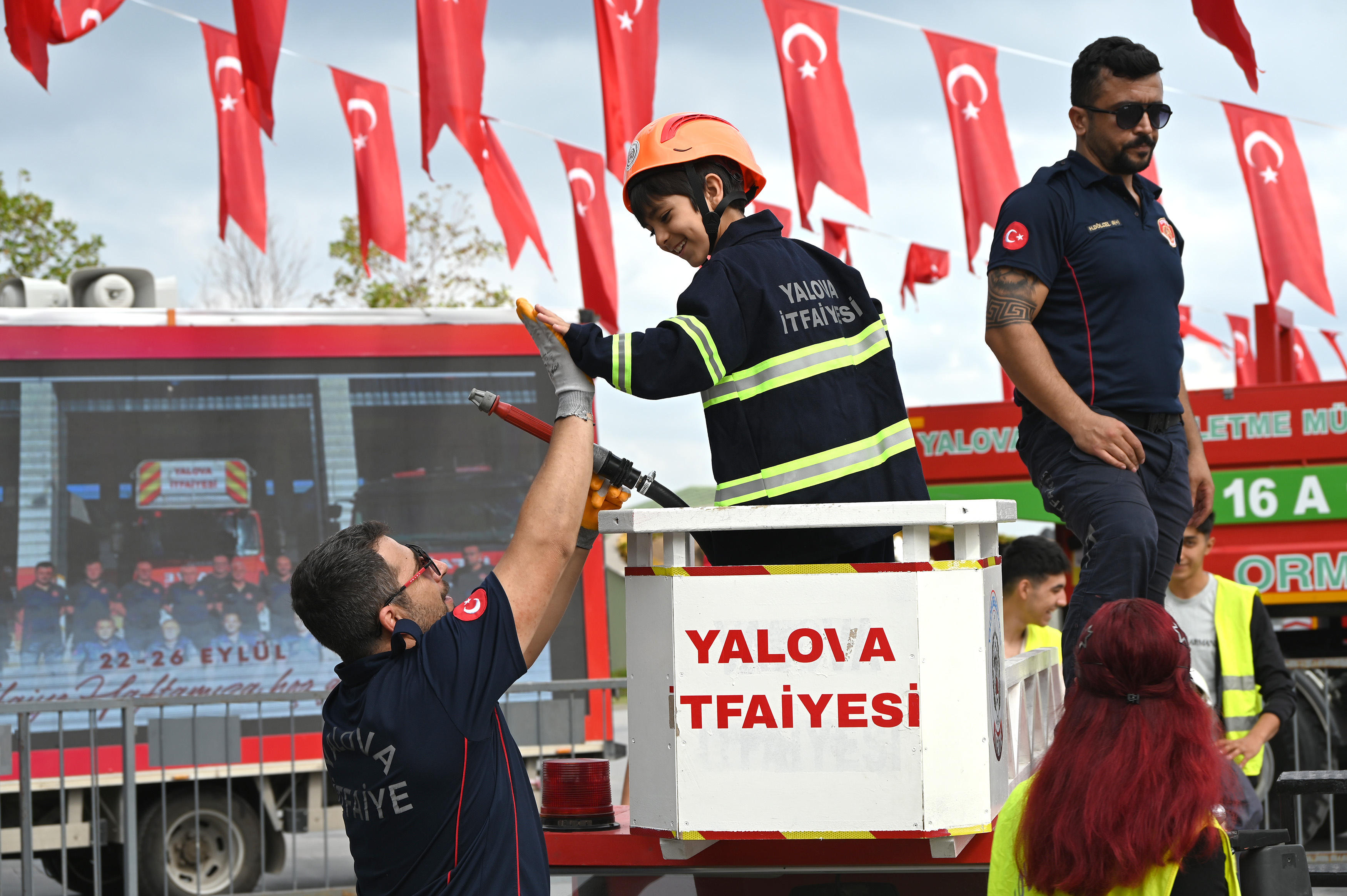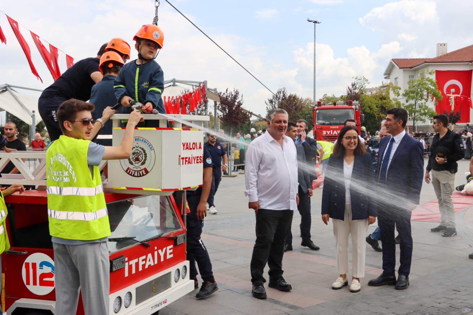 Yalova Valisi Dr. Hülya Kaya da Başkan Gürel ile alanı gezerek İtfaiye Müdürü Yaşar Dilmaç’tan bilgiler aldı. Vali Kaya ve Başkan Gürel, etkinlikte çocukların heyecanına ortak oldu.