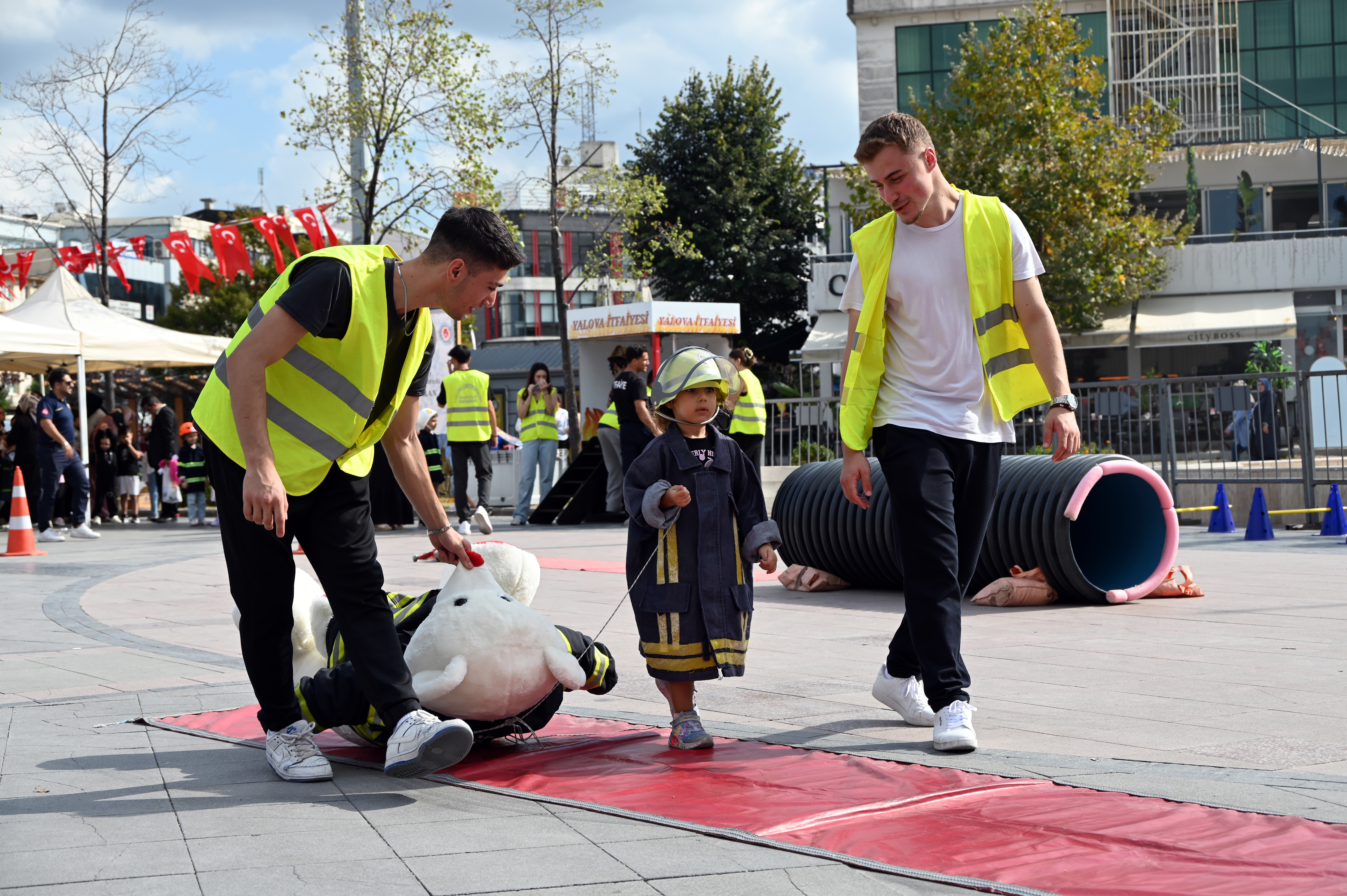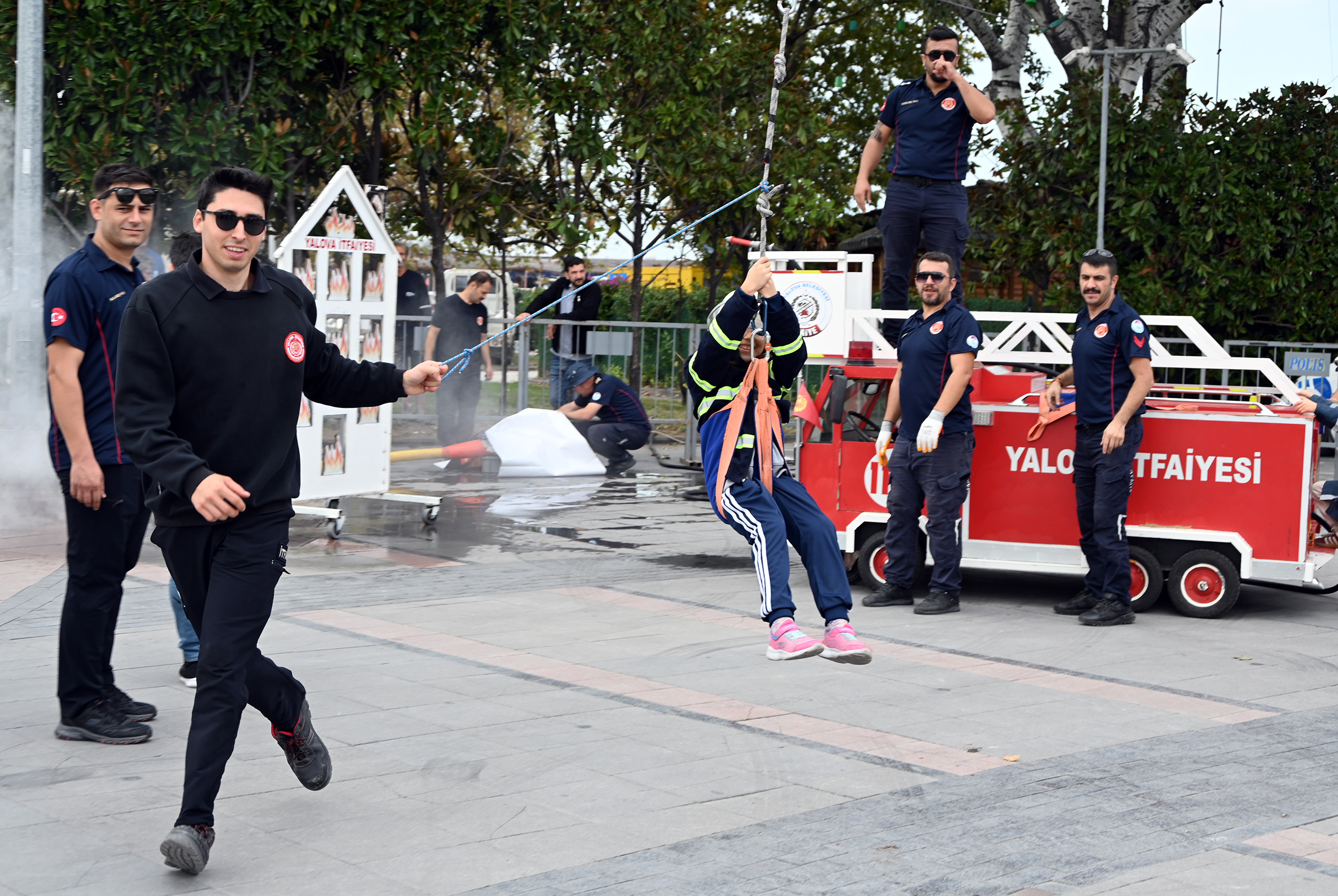 Etkinlikte 4-10 yaş arasındaki çocuklar için özel oyun ve eğitim alanları kuruldu. Minikler, Yalova Üniversitesi Sivil Savunma ve İtfaiyecilik Bölümü öğrencilerinin de desteğiyle yangın hortumu taşıyıp tünelden geçerek, denge tahtasında yürüyüp itfaiye kıyafeti giyerek keyifli vakit geçirdi. El yapımı ahşap itfaiye aracına binen çocuklar, yangın simülasyonunda hortumla müdahale yaparak gerçek bir itfaiyeci deneyimi yaşadı. Programın en heyecanlı bölümü ise zipline parkurunda gerçekleşti. Etkinlik sonunda katılan tüm çocuklara katılım belgeleri takdim edildi.
