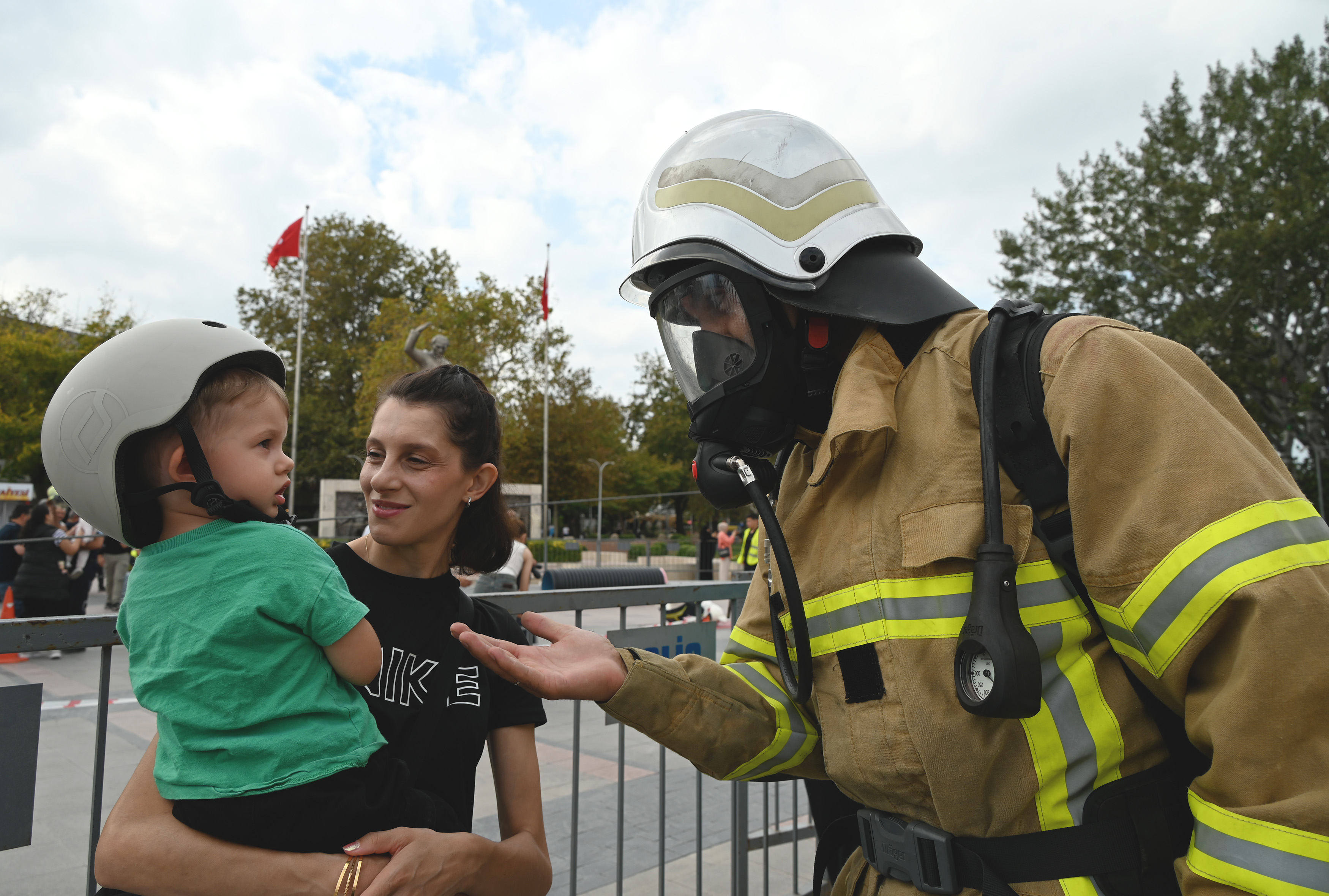 Öte yandan alanda yangın söndürme ve olaylara müdahale araç ve ekipmanları da sergilendi. Alana İstanbul Büyükşehir Belediyesi İtfaiye Müdürlüğü’nden yangın söndürme aracı gelerek buradaki etkinliğe destek verdi.