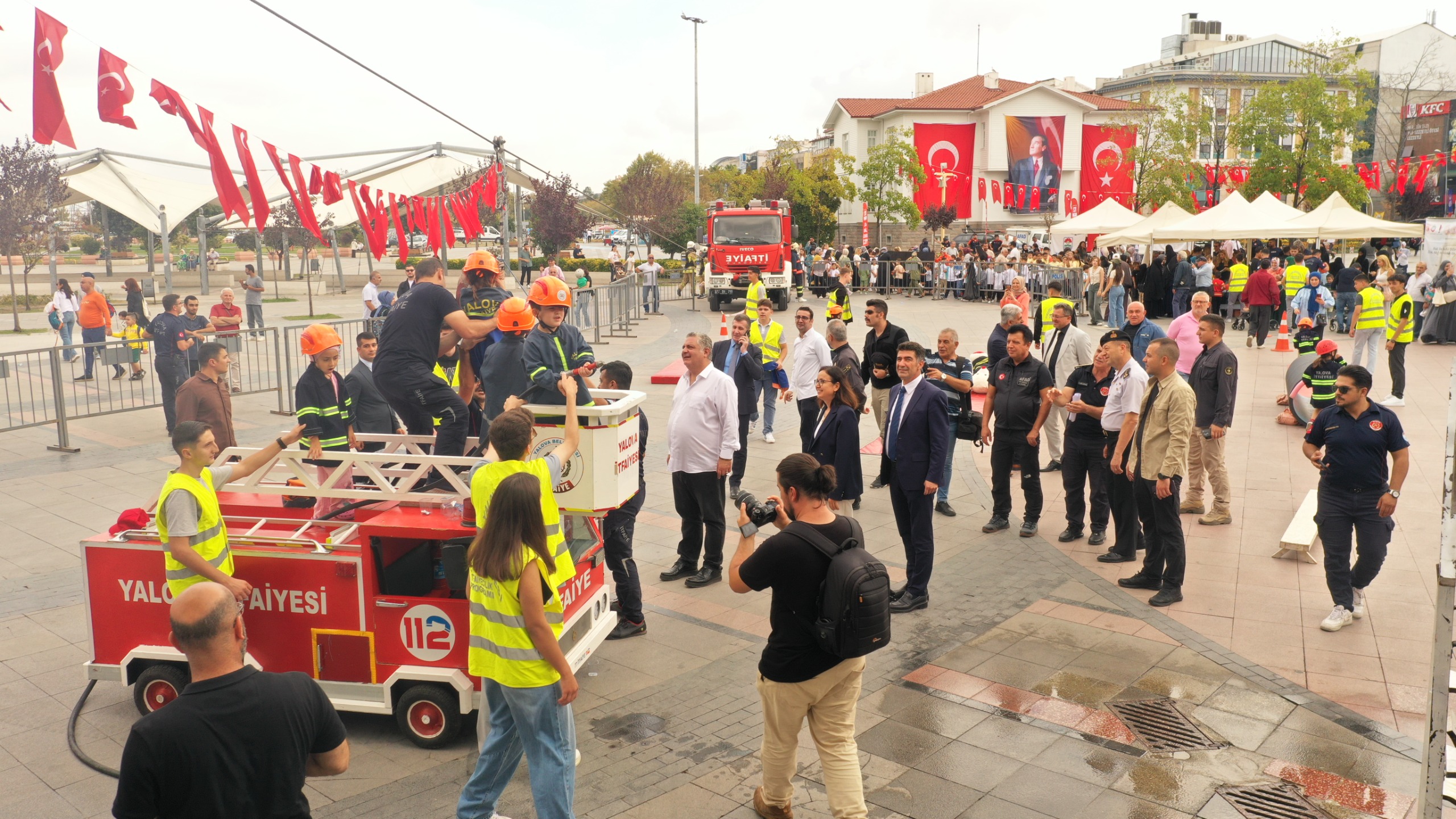 Yalova Belediyesi, İtfaiye Haftası kutlamaları kapsamında miniklere unutulmaz bir gün yaşattı. Kent meydanında “Küçük İtfaiyeciler” adıyla düzenlenen etkinlik yoğun ilgi gördü.