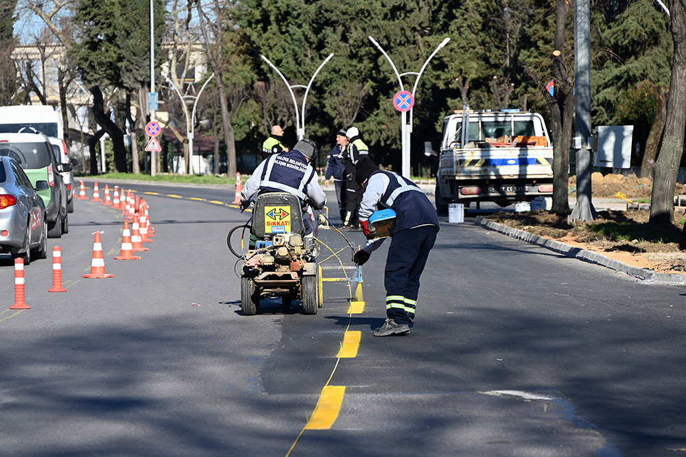 Kent genelinde yürütülen çalışmalar kapsamında trafik yol çizgileri periyodik olarak yenilenmekte, özellikle yaya geçitleri, okul çevreleri ve yoğun kullanılan güzergâhlarda yapılan uygulamalarla görünürlük artırılarak yaya ve sürücü güvenliği en üst seviyeye çıkarılmaktadır. Bu sayede trafikte düzen sağlanırken, olası riskler en aza indirilmektedir.